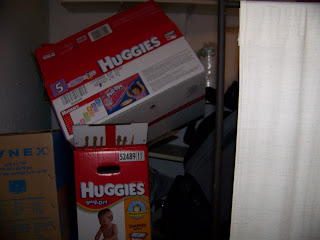 No discussion of our lifestyle would be complete without mentioning the fact that we store EVERYTHING the older children have used for the next child in line to receive it. This means I have boxes and bags and more bags of "stuff" all over the house, but mostly in the basement where Patrick and G share a room. There is stuff in a corner, stacked to the ceiling. There is stuff in a wooden shelf behind a cloth curtain. There is stuff in their makeshift closet stacked to the ceiling as well. D jokes that by the time I find where stuff is located, the children have grown out of it. This is partially true, but I think only because things get grown out of unevenly. Say I have a child with a large chest and skinny legs. He'll outgrow stuff and I'll store it season by season. But if the next child has a large waist I might find he's outgrown the pants by the time I unwrap them. It is VERY DIFFICULT to store things in their exact sizes when you consider that a 4t in one brand is certainly not a 4t in another. I try to be objective and reasonably standard when packing clothes, but you know how life is. I do save quite a bit of money by doing this; however, it does lend a messy appearance to the house because it cuts down on our other storage. I think in three years we will not have nearly so much stuff as J and S will have gotten over the period where they change entire wardrobes in a month due to growth.
